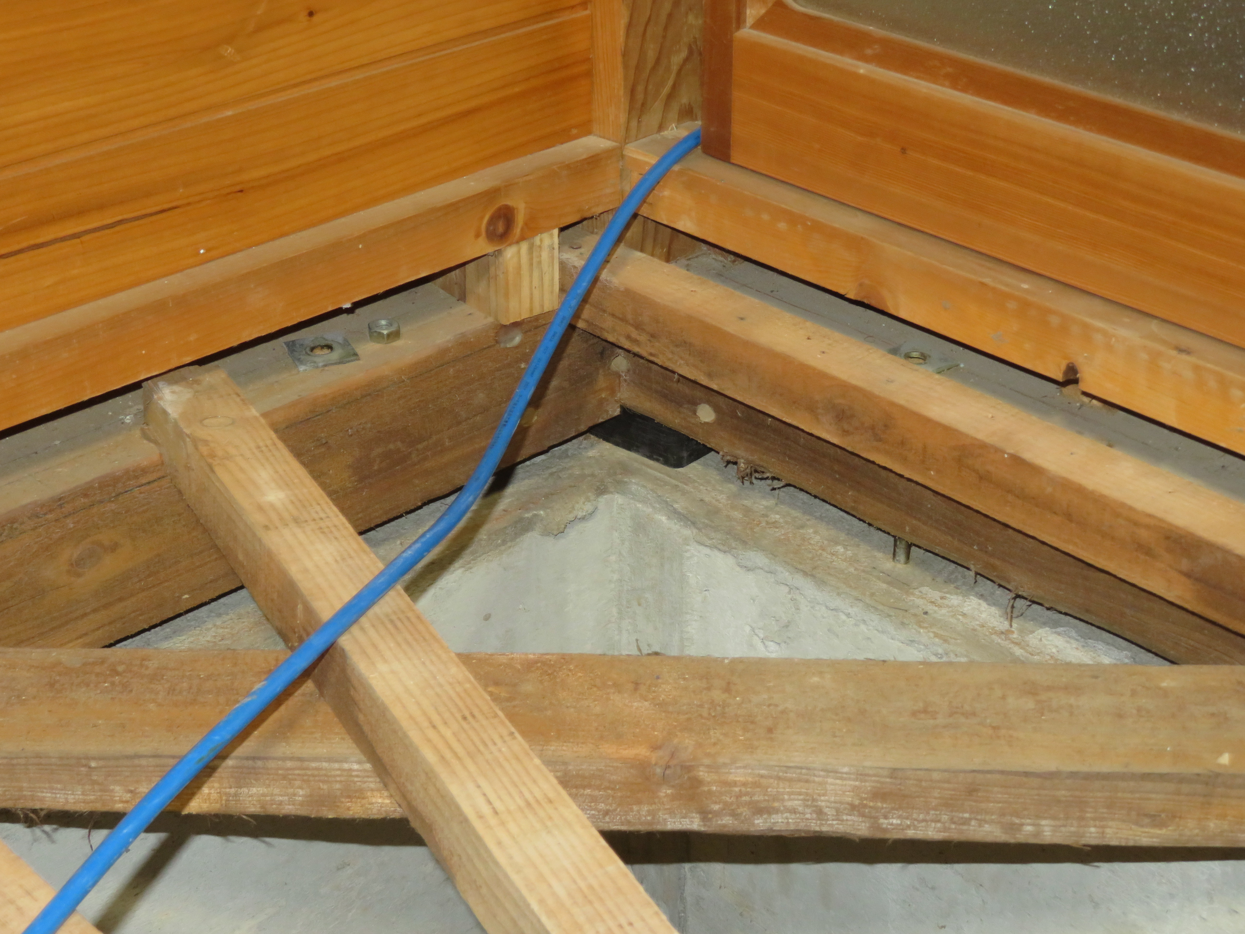 アンカーボルトは有りませんが、二階への柱が在るのでジャッキが必要です。 3/5
